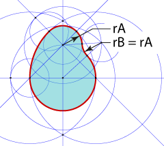 Animation du tracé d’un arc tangent à deux arcs quelconques.